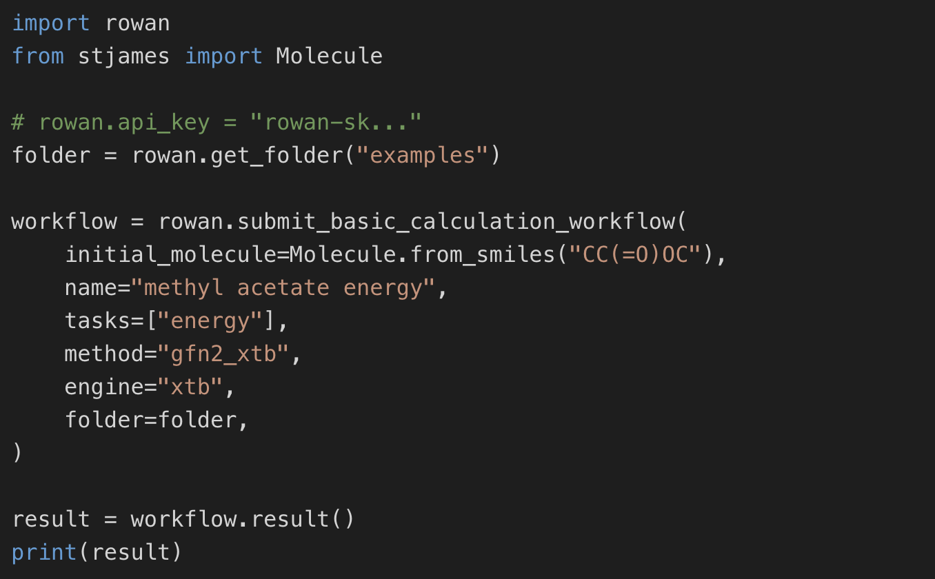 Automate screening studies, descriptor generation, and simulation workflows with Rowan's Python API.